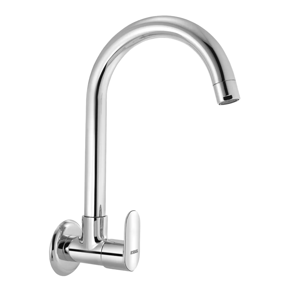 123254 - Sink Cock Wall mounted with full motion EXTENDED spout and wall flange and Aerator